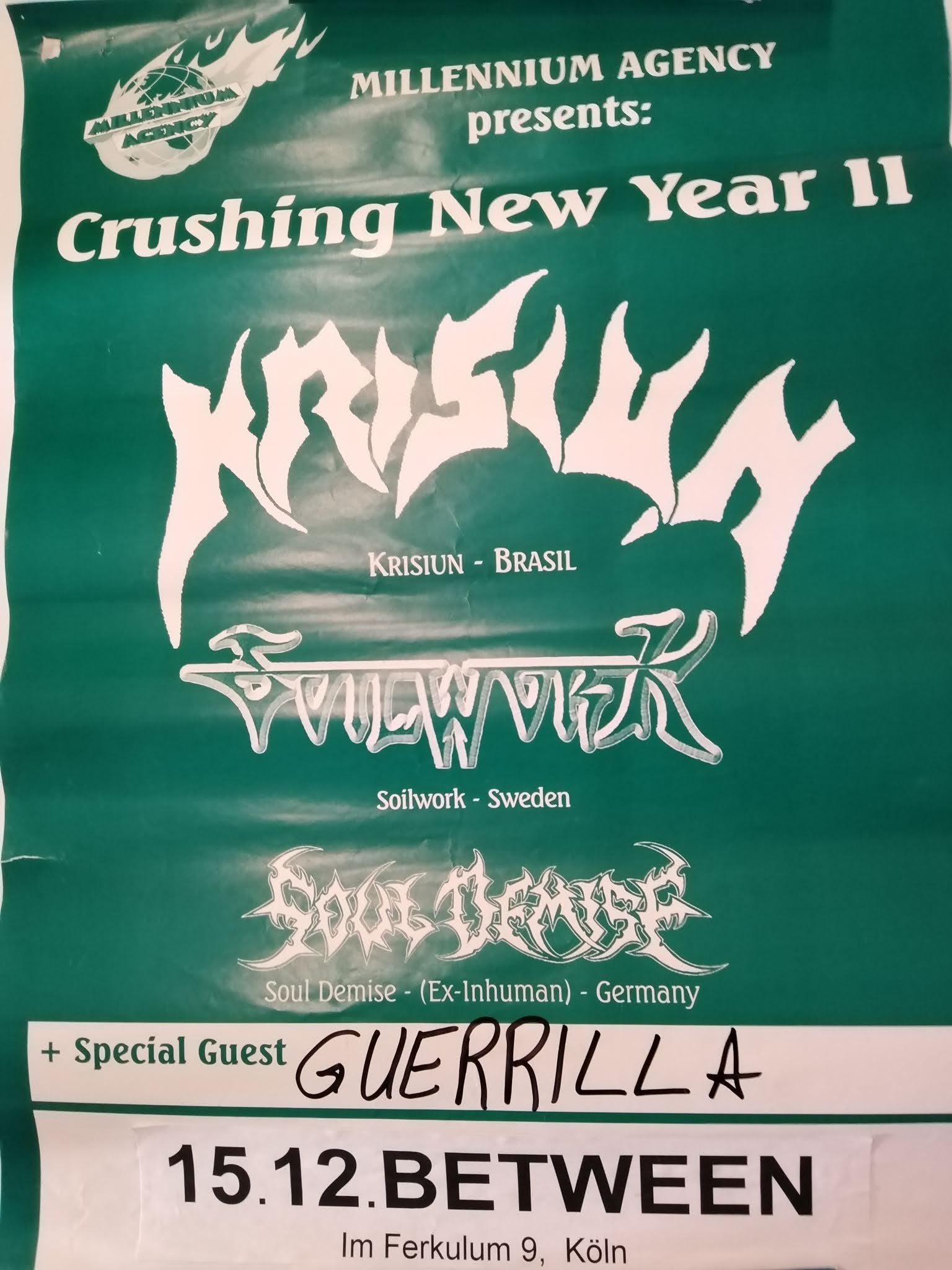 Note from the author: If you're interested in the metal scene in Cologne / Bonn and surroundings, I can further mention the following bands (regardless of quality), of course a lot of them don't exist any longer or split up a long time ago, so regarding some bands you won't even find anything in the world wide web: Guerilla, Skum, A-Rise, Sic Zone, Contrary, Wolfen, Endart, Mortorm, Aardvarks, Syre, Klabautamann, Malus, Woburn House, Owl, Island, Jack Slater, Pripjat, Ayahuasca, Raptvre, Mysticism, Unholyland, Frozen Illusion, Thy Majesty, Orkus, Perzonal War, Citadela, Antichrist, Holy Flame, Sezession, Dakria, Centaurus-A, Chapel Desecrator, Tortur, World Downfall, Disörder, Tankobot, Infernäl Death, By Brute Force, Exsanguination, Shredhammer, Mistress, Asmodina, Atrium Noctis, Somnium Mortuum, Odium Immortalis, Act of Worship, Morast, Serpent Eater, Alchera, Garstig, Mortal Peril, Thornostrum, Legacy of Vidar, Thorn, Sun of Sadness, Ages Gone, Jumpin' Jesus and for sure I will have forgotten some !